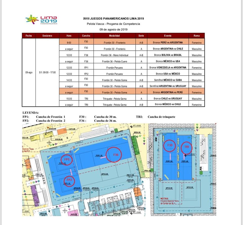 PANAMERICANOS LIMA 2019 CALENDARIO COMPETENCIA VIERNES 9 AGOSTO