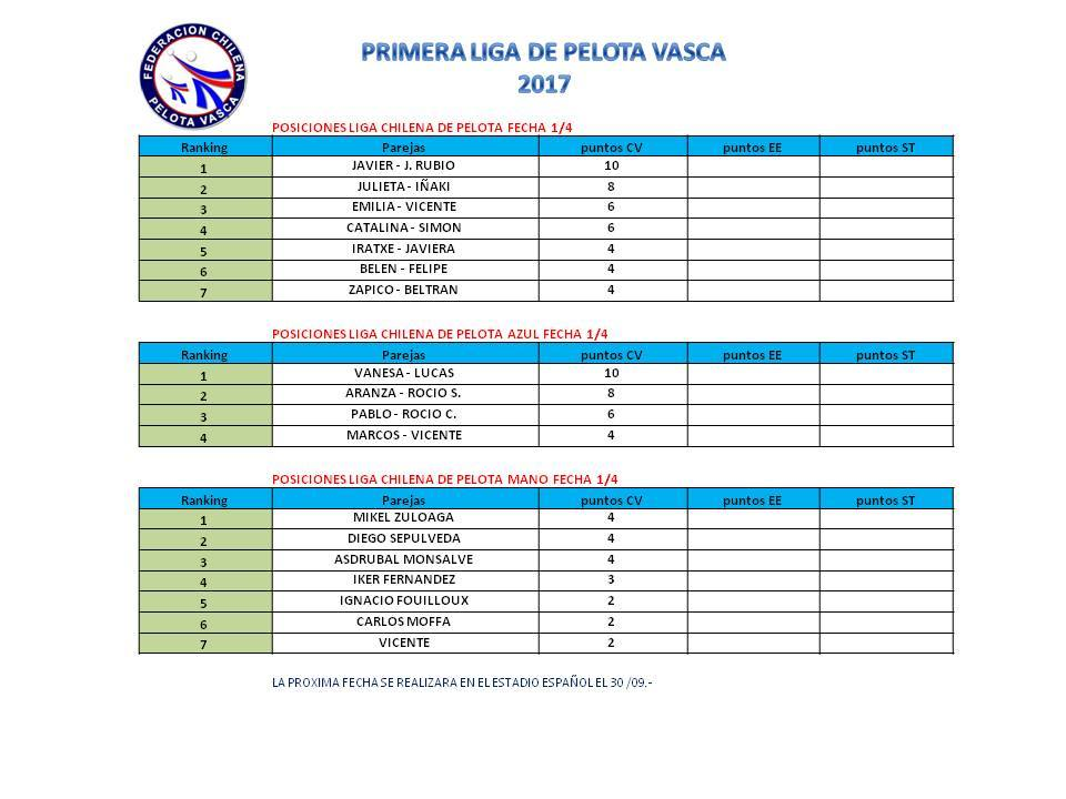 Vale la pena mencionar que esta representa a la primera jornada de la liga, la cual continuará desarrollándose a lo largo de todo el año, teniendo como segunda fecha el día 30 de septiembre, esta vez en el Estadio Español de Las Condes como sede.